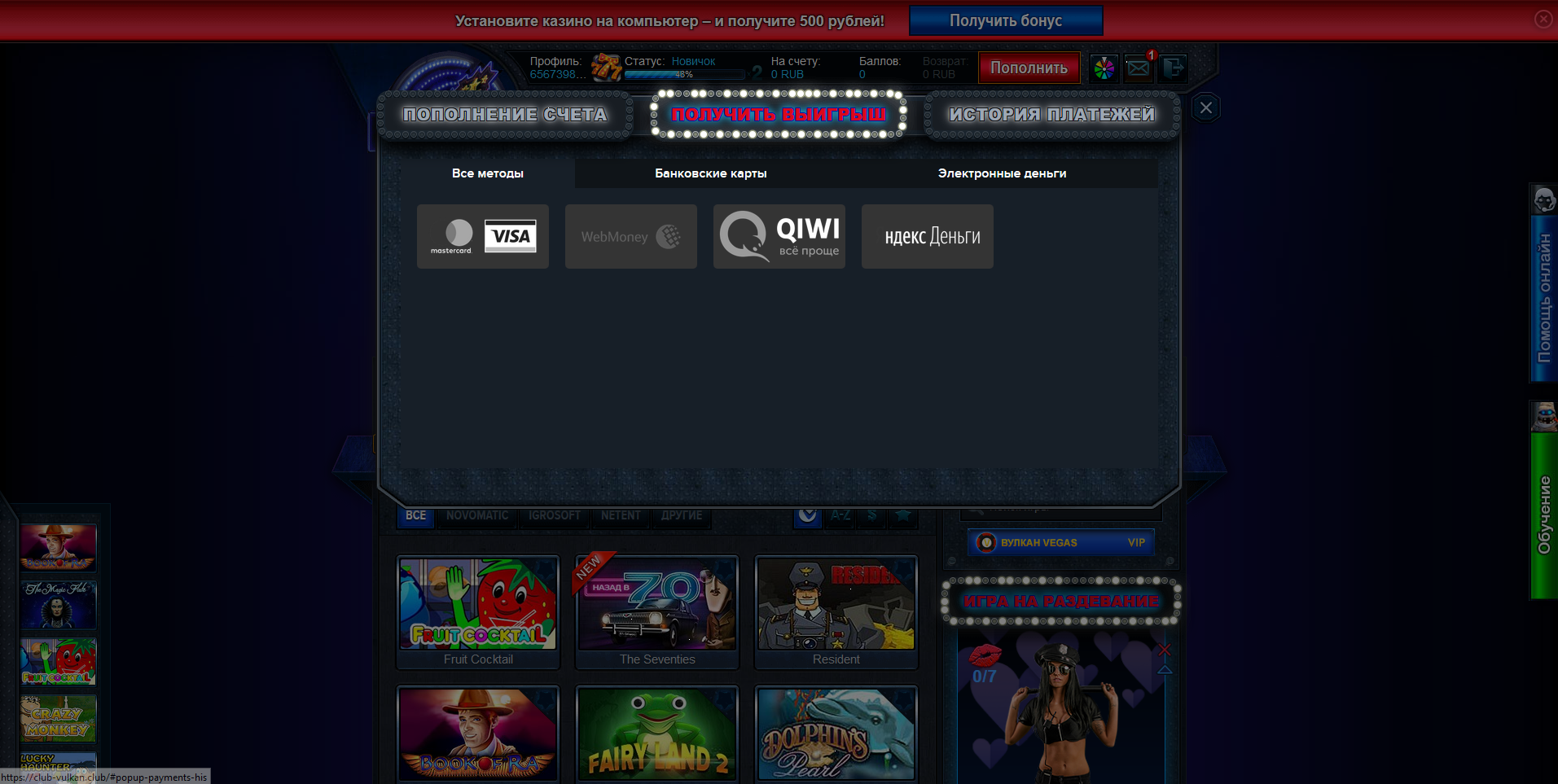 • Скачать обновления (Скрипт казино вулкан с модулем - раздень девушку) 💊